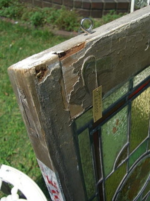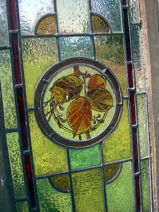 手描きのはリーフの絵が風合いのあるステンドグラスです。 サイズは、縦81.3cm、横40cm、幅4cmです。