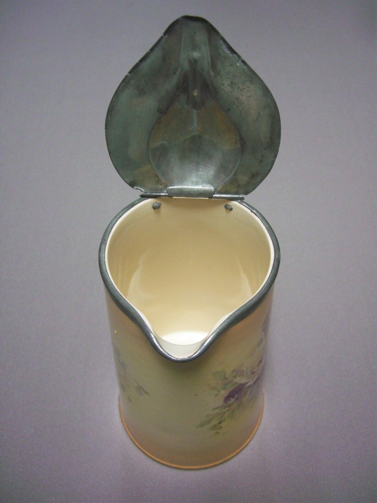 ふたはピューター(スズ合金)製です。手描きの異なる花の絵が前面と後面にあしらわれています。