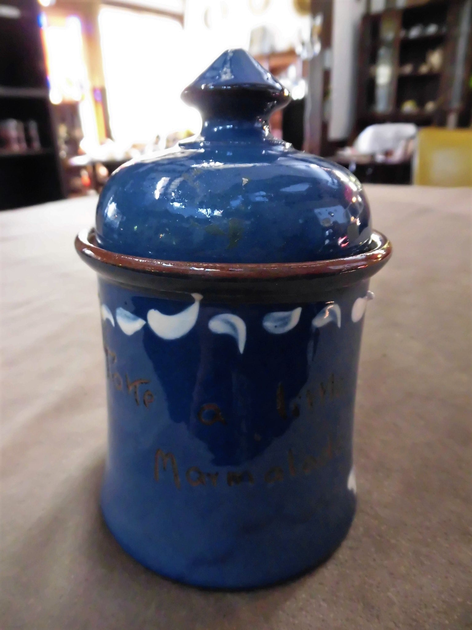 イギリス、アガサ・クリスティーが生まれ育ったトーキーの焼き物です。 描かれているのは海と空にカモメ、でしょうか。 サイズはポットの高さ8.8㎝、蓋まで13.5㎝、 底の直径8.5㎝です。