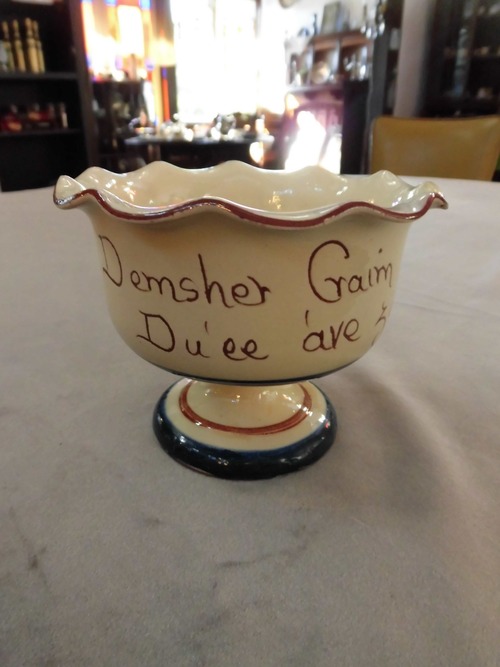 イギリス、アガサ・クリスティーが生まれ育ったトーキーの焼き物です。 大きな木のある家が描かれたコンポートです。焼きムラ、窯キズあり。 サイズは、直径12.5㎝、高さ9.5㎝、底の直径7.5㎝。