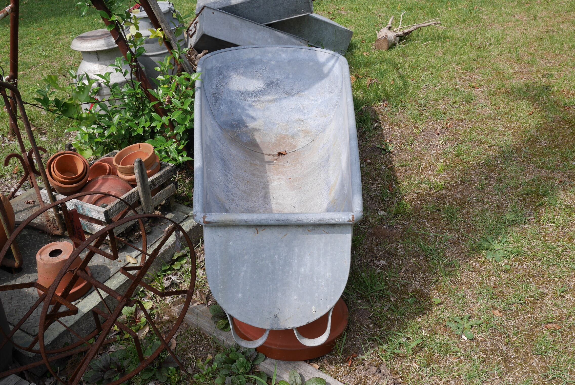 大きなフラワーコンテナにいかがでしょうか。底の穴あけは承ります。