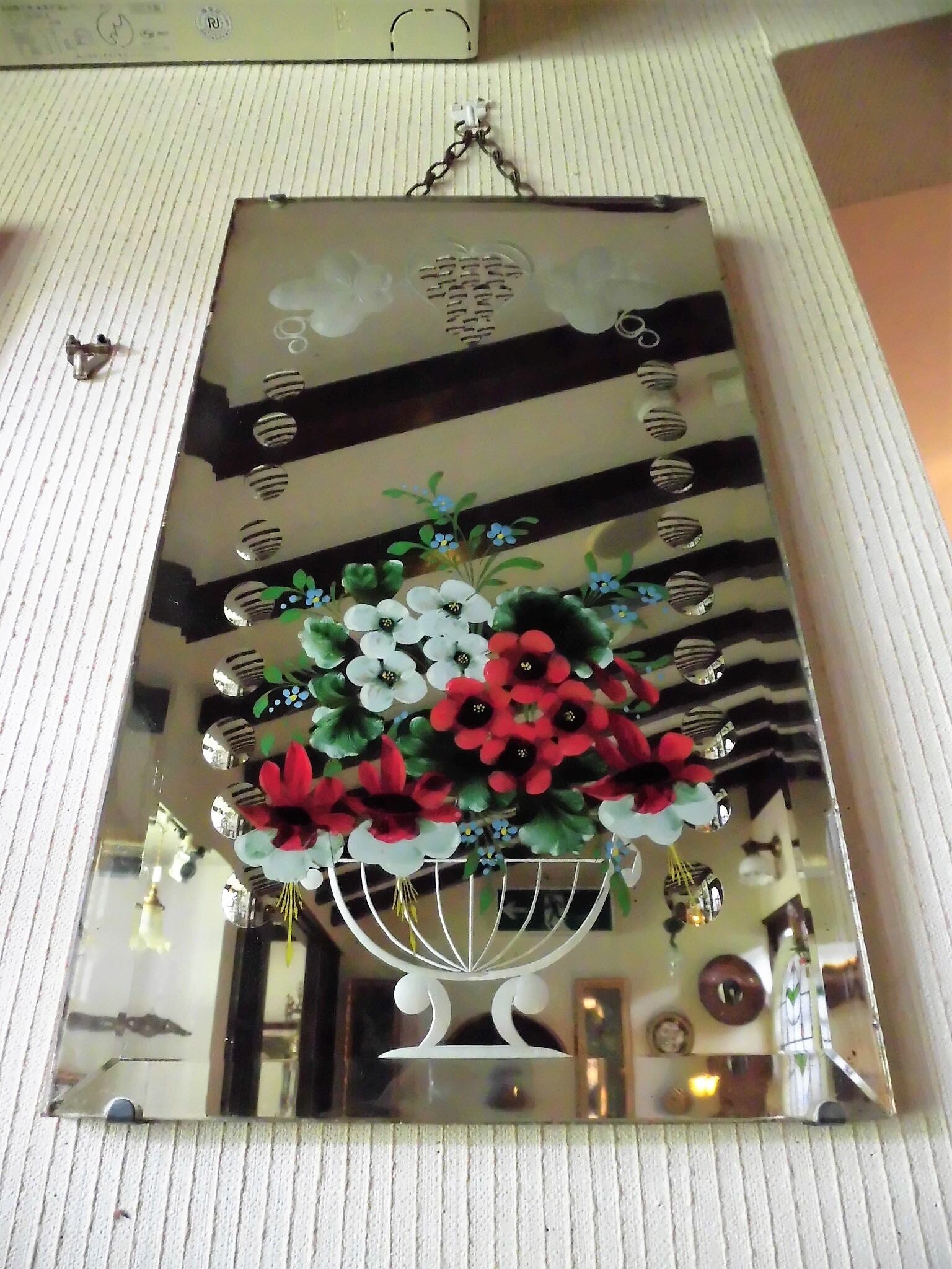 British。 ハンドペイントのガラス絵です。鏡になっています。 サイズは、縦50.7㎝、横29.2㎝、幅1.4㎝です。